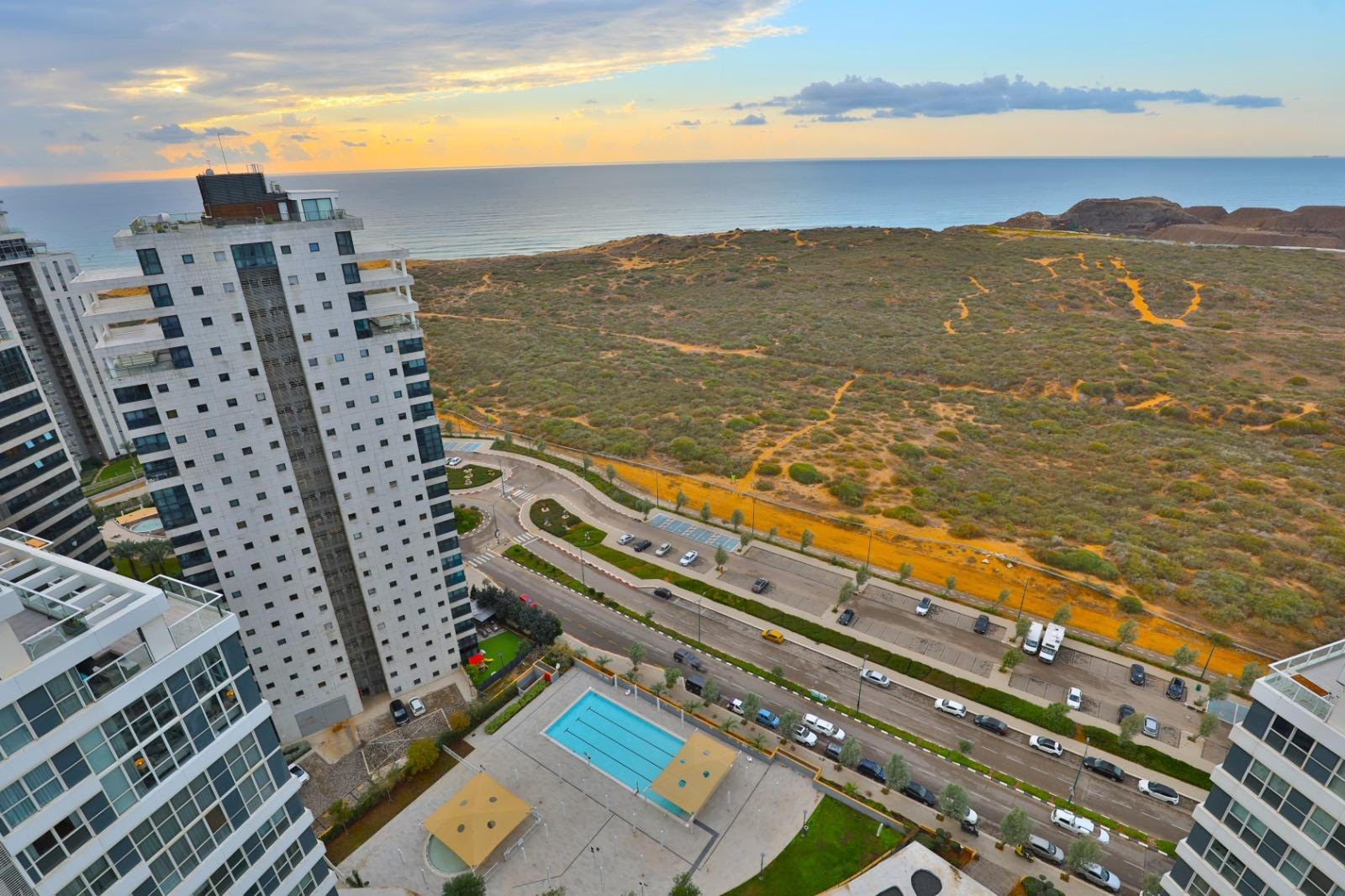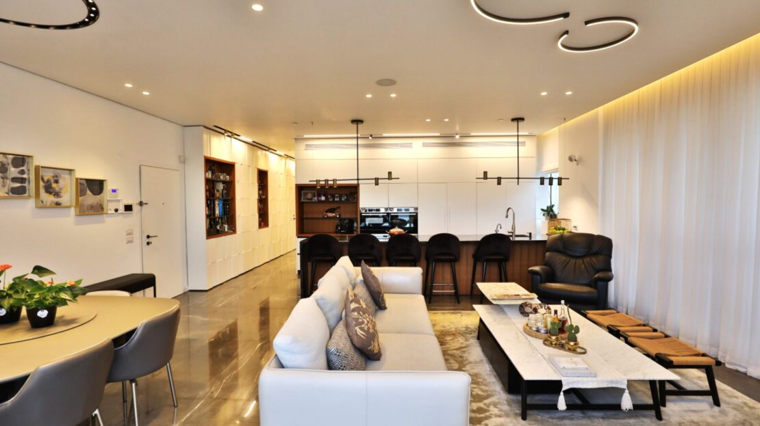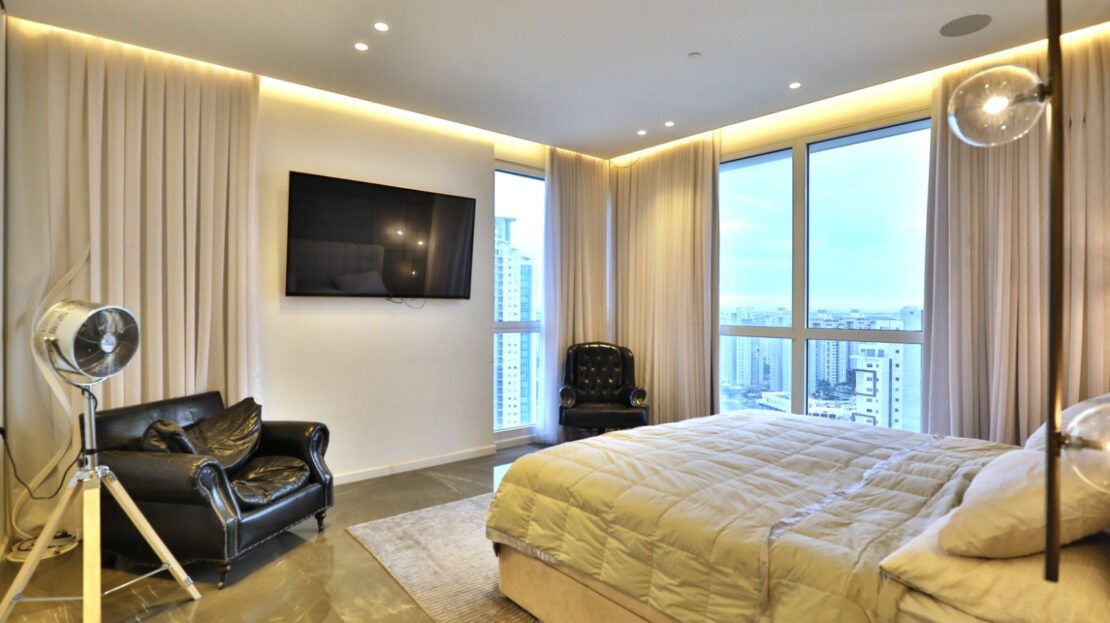This furnished and fully equipped mini penthouse is situated on a high floor in a 24-story tower in the city of Yamim – one of the most prestigious and sought-after neighborhoods in Netanya. Just a few steps from the sea, the lively Piano shopping center, and a city exit that provides easy access to various points in Israel.